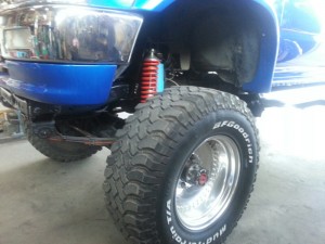 コイルオーバー追加しました! ハイラックス100系に、 USビルシュタイン製コイルオーバーを追加しました! 今までも特注ビルシュタインショックを装着しておりましたが、 リーフ車特有の左右の車高のヘタリを調整したく、やってしまいました(^o^ゞ 目立ちますねー! 機能美ってやつです(^^)d ありがとうございました!